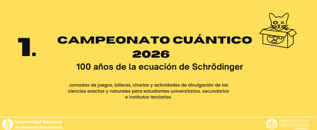 El proyecto “Campeonato Cuántica 2026” consiste en una serie de jornadas lúdico-científicas organizadas en la UNGS, en el marco de los 100 años de la mecánica cuántica, destinada a estudiantes de la UNGS, escuelas secundarias del territorio e institutos terciarios de carreras afines. Su objetivo es promover el interés por la química, fortalecer trayectorias académicas, fomentar el aprendizaje activo y generar sentido de pertenencia.