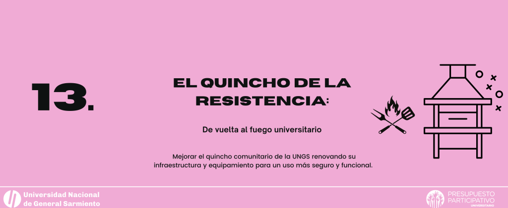 El proyecto propone la mejora integral del quincho comunitario de la UNGS, un espacio muy utilizado para reuniones de trabajo, encuentros estudiantiles, actividades institucionales, celebraciones y cierres de cursada. Actualmente, el quincho presenta deterioro en la parrilla, desgaste en los cerramientos (nylon cristal), corrosión en superficies metálicas y falta de un espacio adecuado de guardado y herramientas necesarias para su uso.