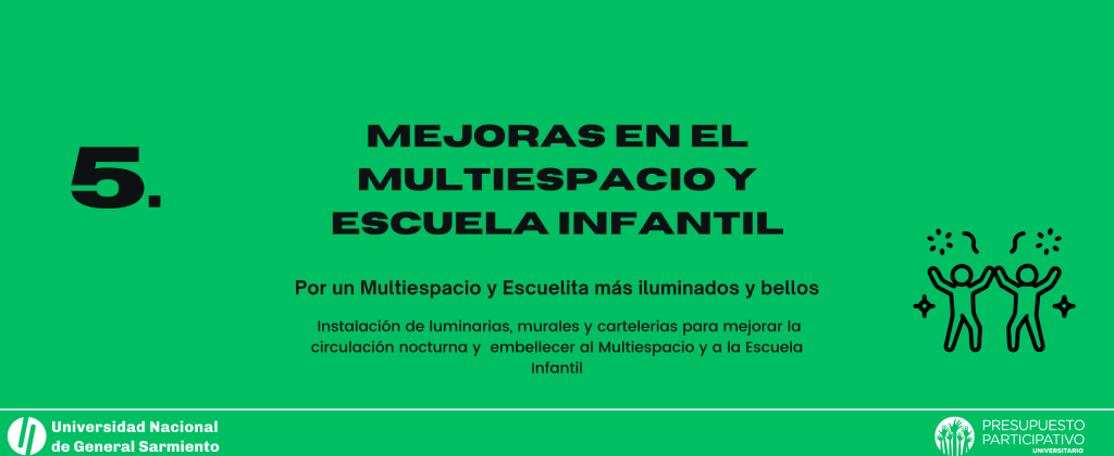 Valorizar el edificio del Multiespacio Cultural UNGS y la Escuela Infantil, a través de luminarias, obras al aire libre, pintura y plantas exteriores.